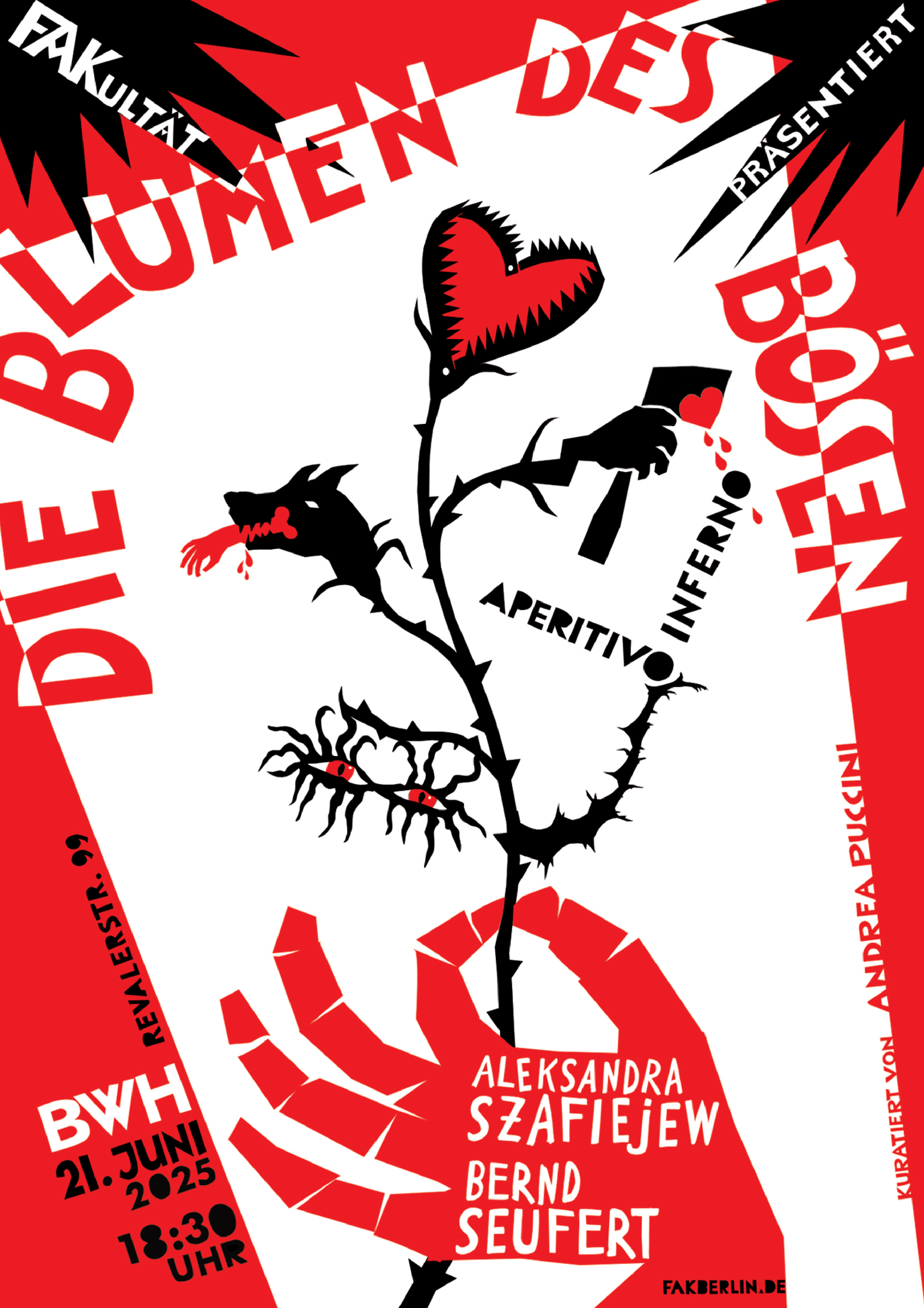 In der Ausstellungsreihe Aperitivo Inferno, die ein Mal im Monat im Sommer 2025 im Beamtenwohnhaus stattfindet, werden jeweils eine Arbeit von zwei Künstlern gegenübergestellt. Dieses Mal wurden die Arbeiten von Bernd Seufert und Aleksandra Szafiejew gezeigt.